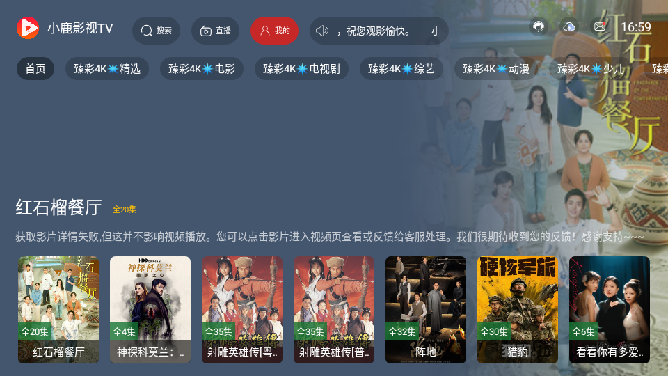 1.打开小鹿影视TV,进入应用首页