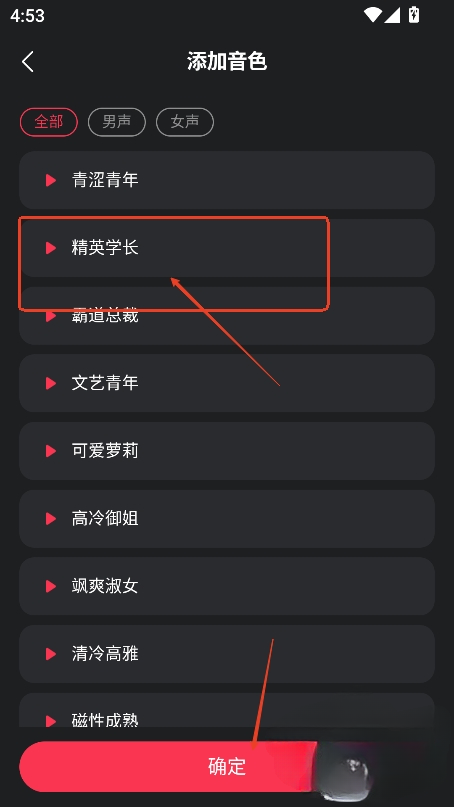 4、然后手动勾选喜欢的音色添加,点击“确定”。