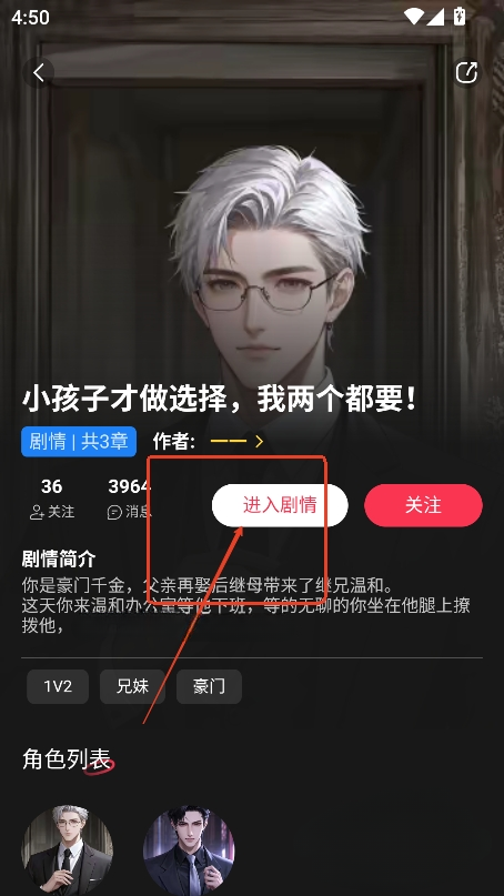 3、接着任意选择一个喜欢的角色,点击【进入剧情】。
