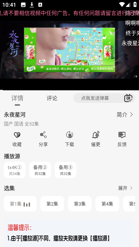3、任意选择一部你喜欢的剧集播放,这里以“永夜星河”为例。