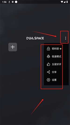 3、然后点击右边侧边栏的三点图标,还可以自定义使用密码锁功能。