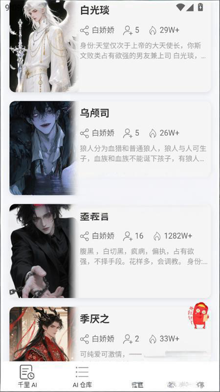 1、进入千里AI之后,我们可以看到各种不同的人物角色。