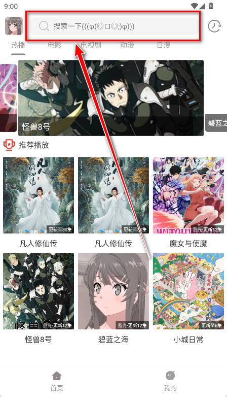 1.请先打开呀哩4k,点击首页上方的搜索框。