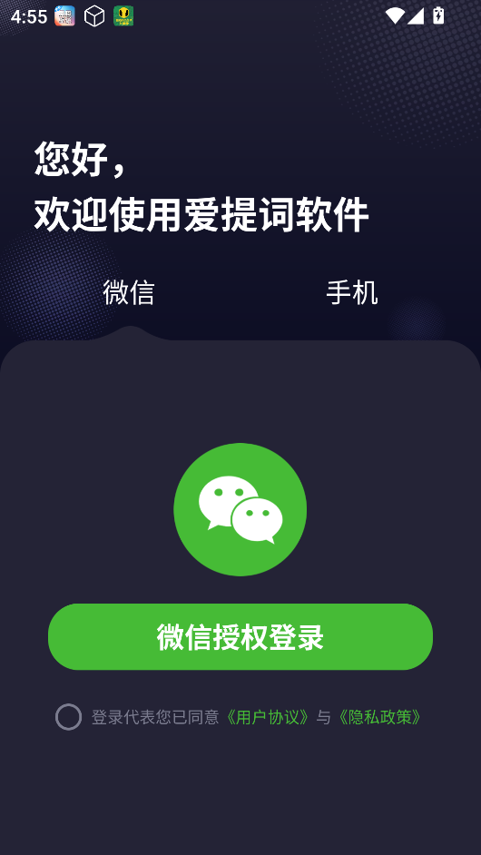1、用户下载安装后进入爱提词软件,注册/登录app。