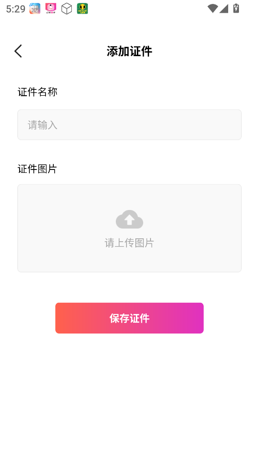 3、点击“立即添加”输入证件名称、添加证件图片保存即可加入。