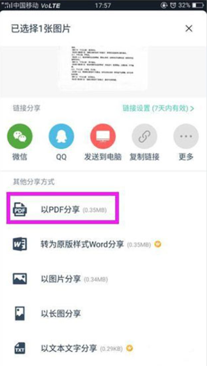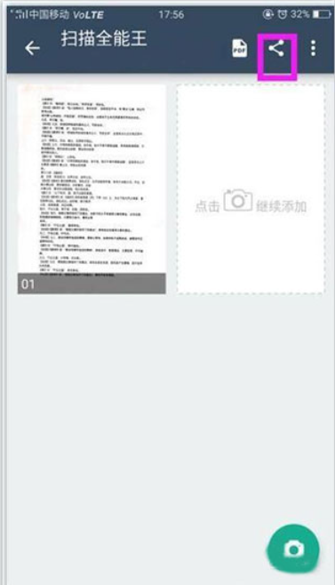 5、进入点击右上角分享,成功后即可得到pdf文件。