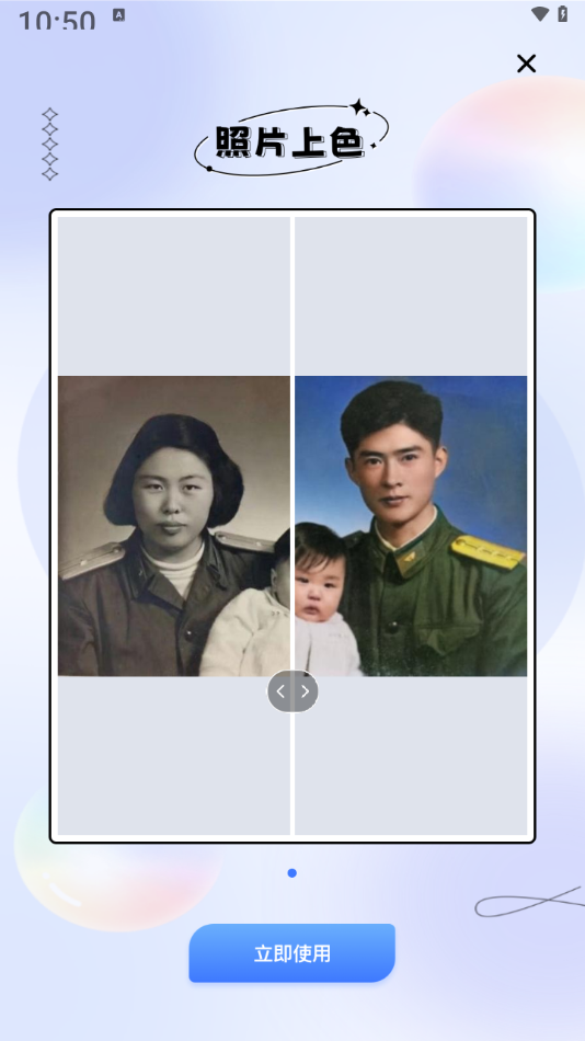 3、提供了上色功能,上传黑白老照片之后,即可智能上色并生成彩色照片;