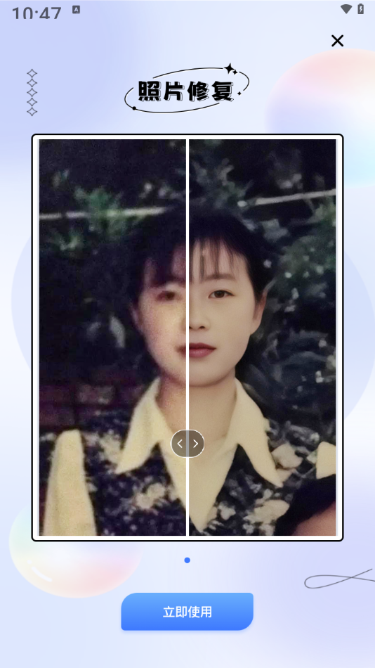 3、点击照片修复进入,点击“立即使用”即可导入照片进行修复。