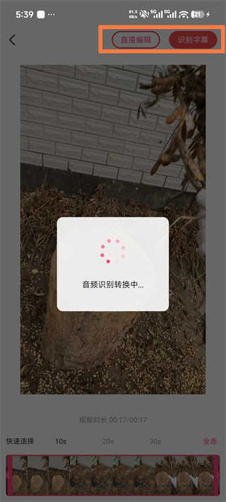 3、在上方,你将看到两个选项【直接编辑】和【识别字幕】。