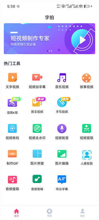 6、此外,字拍App还提供了丰富的特效视频功能,供用户根据需求进行创作与编辑。