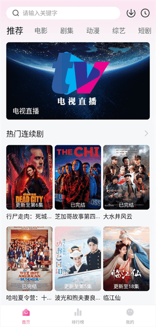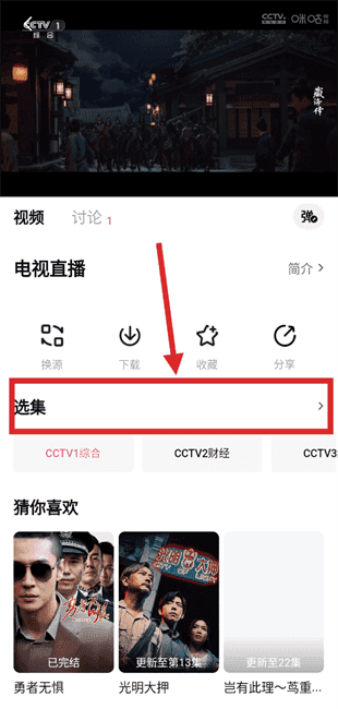 1.该软件提供影视剧以及电视直播双频道,进入在【首页】的推荐专栏点击“电视直播”