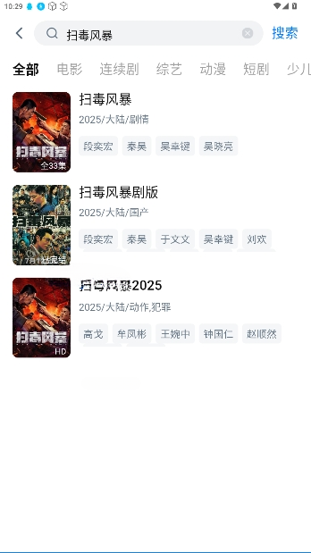 3、然后就可以任意输入一个剧名,这里小编以“扫毒风暴”为例,直接点击【搜索】即可。