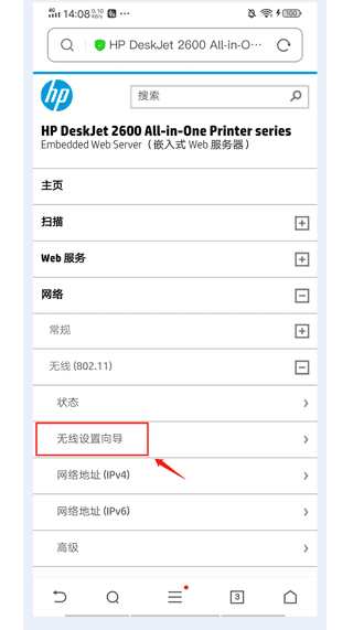 4、查看打印机 wifi 的IP地址,把IP地址的最后一组数字改为1或者0,然后复制该IP地址到浏览器打开。例如我的IP地址为:192.168.223.103,就复制192.168.223.1到浏览器并打开,此时会进入到打印机的配置页。不同品牌的打印机IP地址都有所不同,但是操作方法都一致。