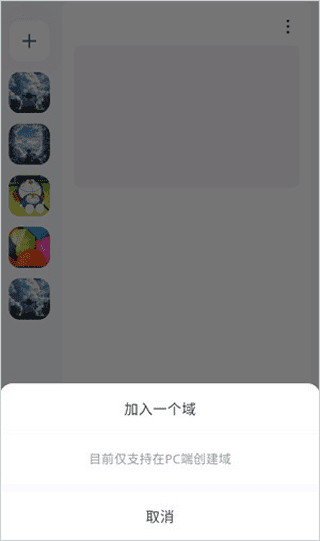 2、登录软件后,在主界面,点击最左侧就是我们已经加入的域(语音频道),手机版仅支持加入已经创建好的域,如果需要创建新域请在PC端进行操作
