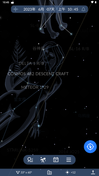 星空地图Sky Tonight是一款款科普类型的天文星系观测软件,可以通过这款软件探索手机指向的方向有哪些行星,小行星,人造卫星,星系,星座,星云,也可以通过搜索功能找到自己想找的天体,同时每一个天体都有相关详细的信息介绍。