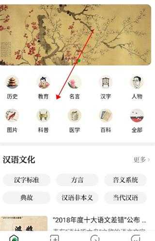 4、另外在首页还可以学习汉字文化、科普、历史等知识。