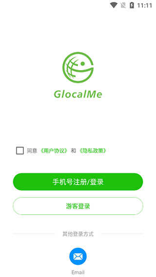 1、在本站下载安装好吉客猫GlocalMe之后,点击进入,根据指引完成注册并登录账户(可使用手机号码或邮箱注册)。
