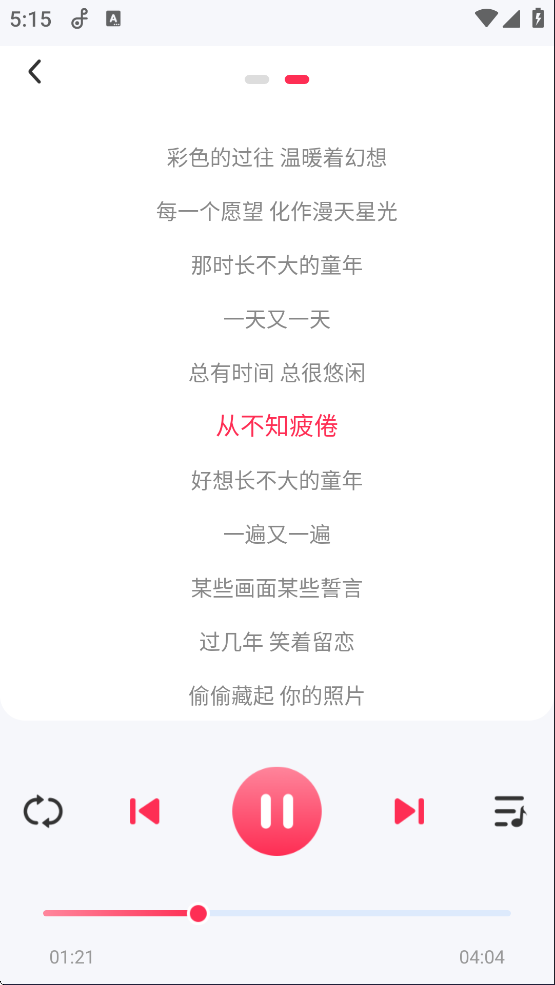 用户播放自己喜欢的歌曲之后,点击进入播放主界面