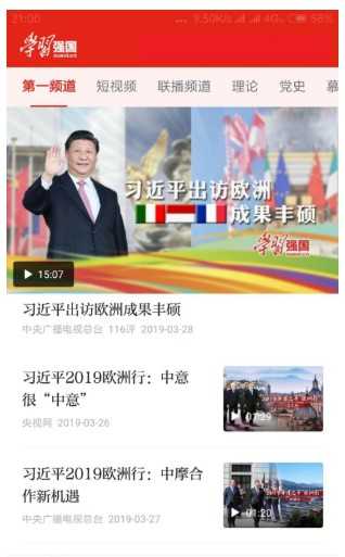 强国平台是一款学习新时代的党建知识的教学平台,以习近平新时代中国特色社会主义思想和党的二十大精神为主要内容,立足全体党员、面向全社会的优质平台。在强国平台app中提供海量、免费的图文和音视频学习资源,探索“有组织、有管理、有指导、有服务”学习,让学习更多样、更个性、更智能、更便捷。其中“第一视频”主要是有关习近平总书记相关活动的视频报道。“联播频道”顾名思义就是央视新闻联播视频。慕课则是免费的公开视频课程,种类丰富。