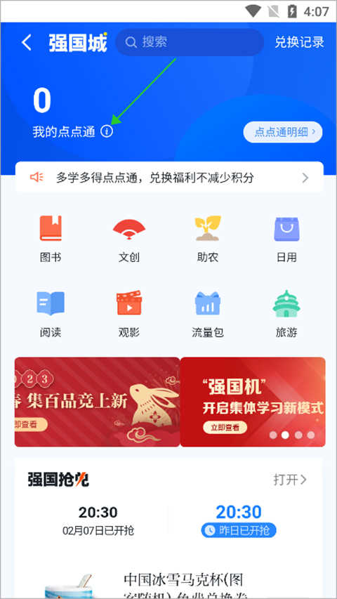 在打开的新页面中找到【强国城】里的点点通进行点击