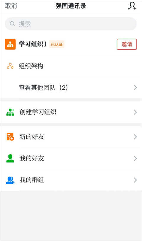 2、强国通讯录-已认证学习组织右侧“管理"-学习组织通讯录