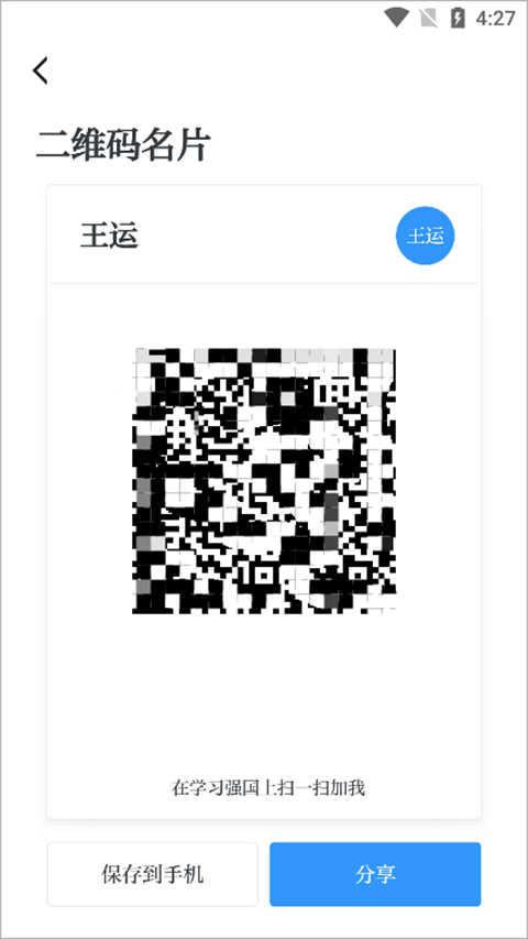 在打开的新页面中即可看到二维码了,用户可以将此二维码保存在手机上或分享给他人进行加我操作