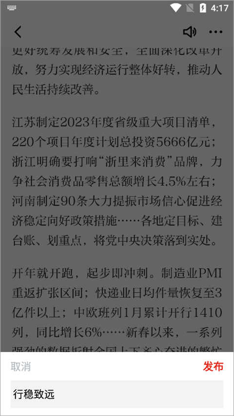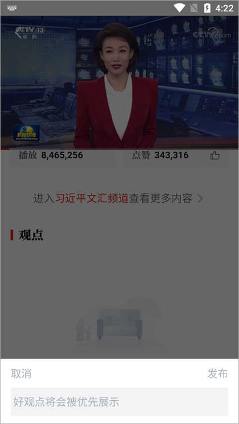 用户点击该文本框可以在弹出的文本输入框中输入想要发表的观点,输入完毕后点击【发布】即可
