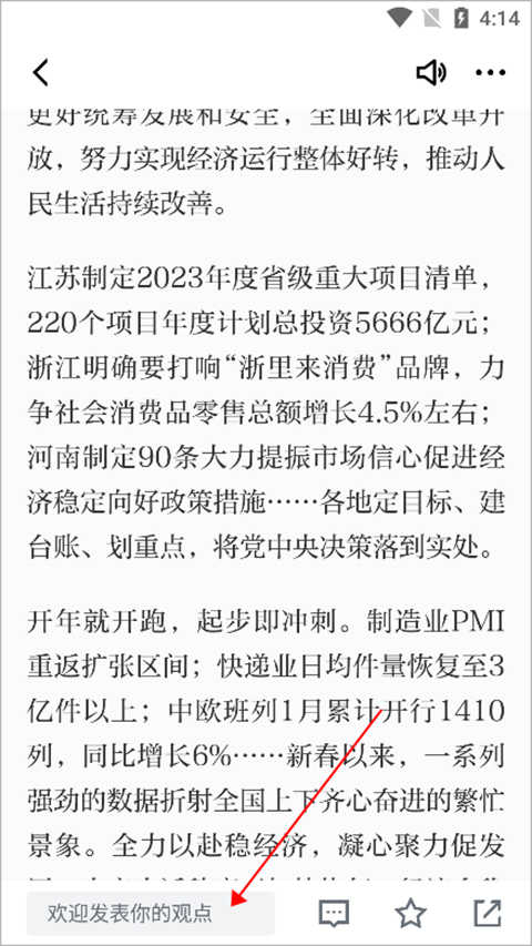 用户在正在阅读的文章页面底部有个发表观点的文本输入框(下图红色箭头所示)