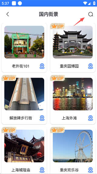 2、进入“国内街景”界面后,可以通过搜索栏输入想看的景点名称进行查找。