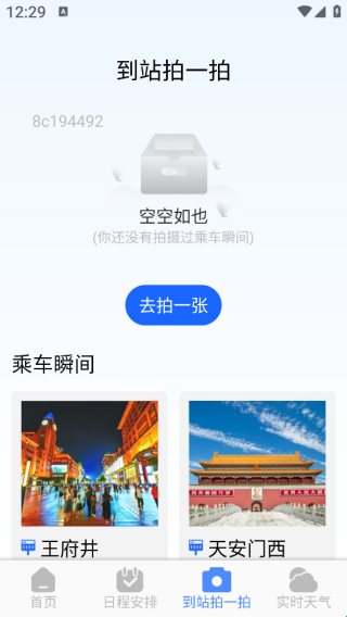 4、点击【到站拍一拍】进入,轻松拍照记录下每个瞬间。