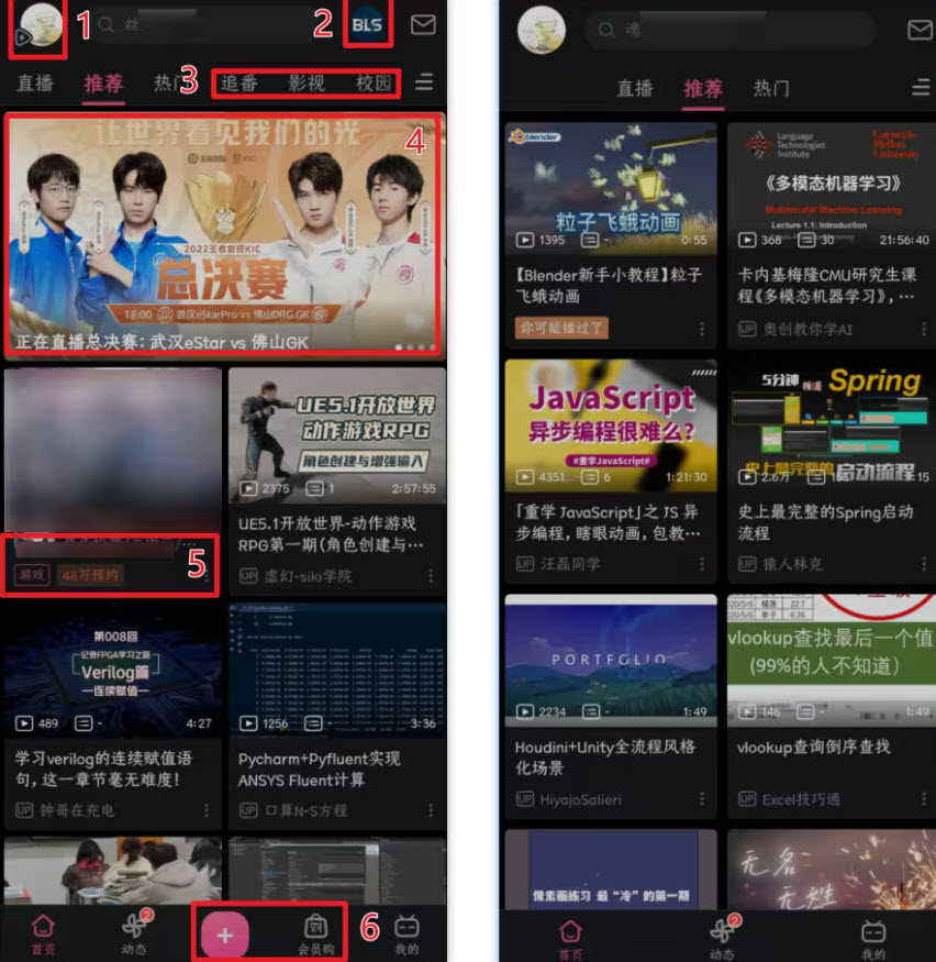 哔哩哔哩国际版没有热点话题,整个界面布局更清爽。