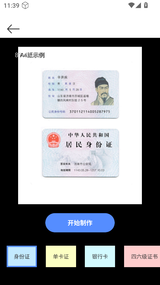 3、以证件扫描为例,进入后首先选择要扫描的证件类型,点击开始制作。