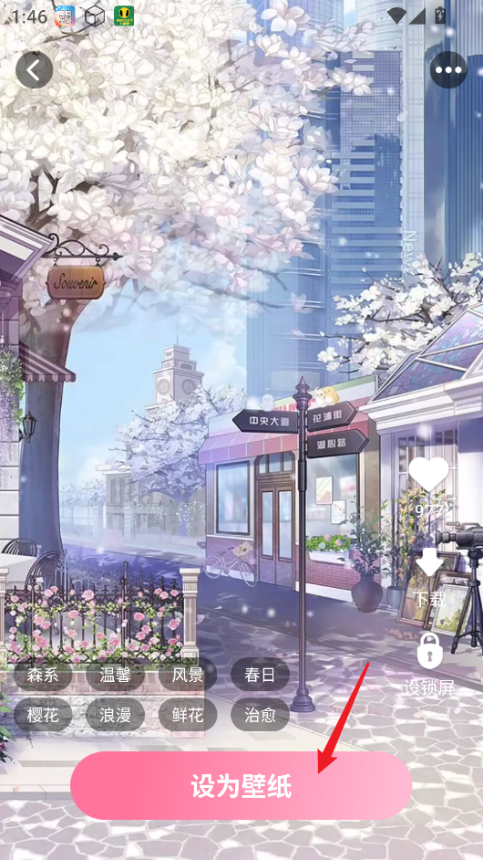 5、点击下方“设为壁纸”即可设为壁纸,还能设为锁屏和下载壁纸哦。