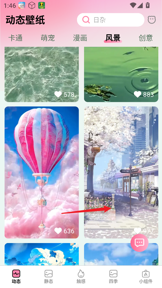 3、以动态壁纸为例,可根据分类或直接搜索选择喜欢的壁纸。