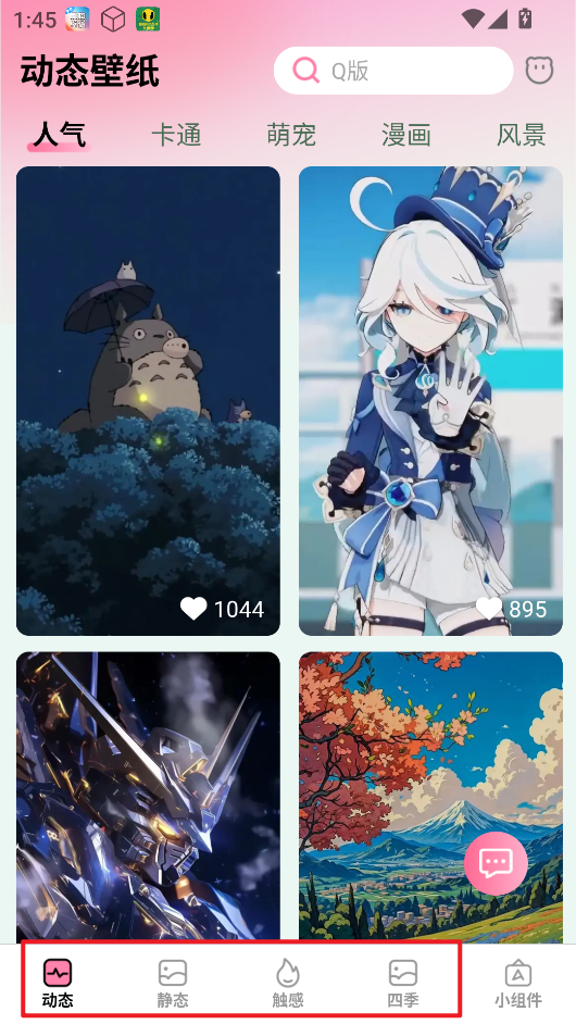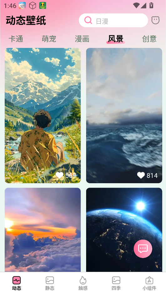 2、app内有动态、静态、触感、四级四个壁纸板块。