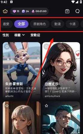 2、通过账号密码登录之后,在主页我们可以看到各种不同分类的ai角色。