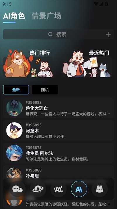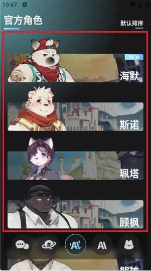 1、进入Furry冒险酒馆后,我们就可以看到AI聊天的对话与对象了