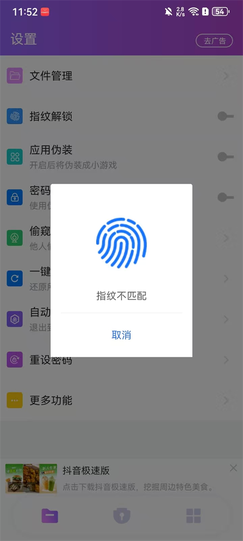 支持安卓全部厂商和版本的指纹识别解锁,解锁更加方便。