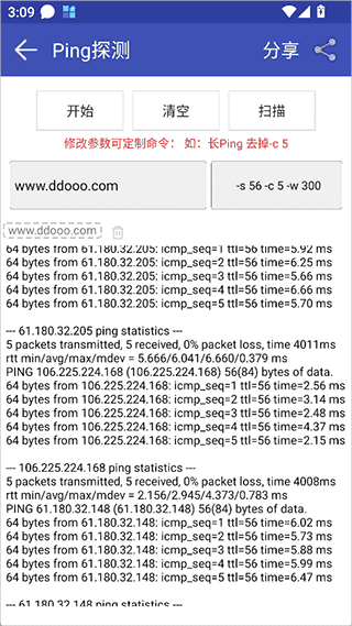 如果你是专业人员,可以修改第一输入框用于修改,ping 操作时的参数(ping命令参数说明),参数空格分割。