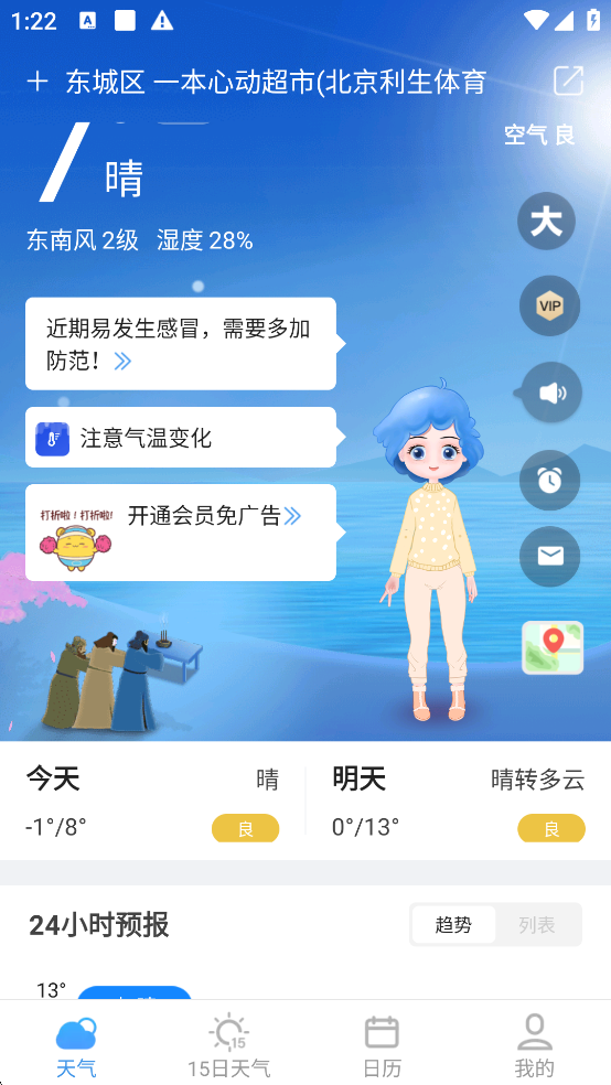 4、全面的天气指数:温度、天气状况、风向、湿度、空气质量、穿衣指数、感冒指数、15日预报。