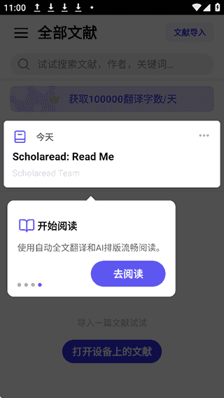 1、导入设备里的已有的文献,也可以在其它app里分享文献到这里