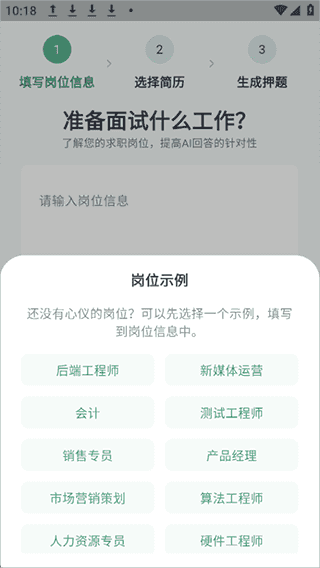 1、打开登录app后对岗位、简历等信息进行选择,以便app进行押题的生成