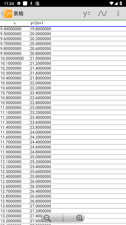 7、可以来到一个大表格,这里显示了当x等于一个数字时,y的答案。