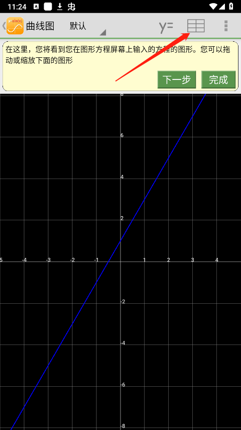6、可以查看到这个方程的线性图,点击右上角的表格图形。