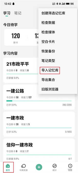 点击首页-右上角三个点-导入记忆库-选择团长分享给你的卡牌