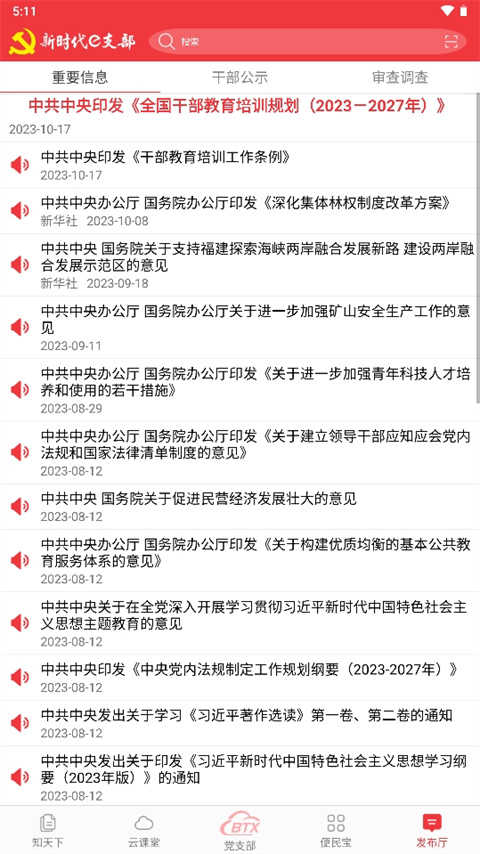 5、在发布厅板块中,里面发布中共中央的相关条文,还有纪律审查和监察调查。