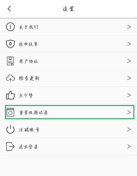2、在设置界面点击[重置做题记录]即可。
