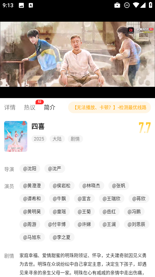 2、接着任意选择一部喜欢的剧集播放,这里小编以“四喜”为例。