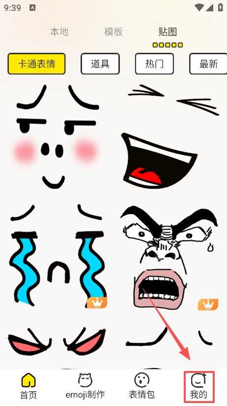 2、成功进入主页之后,我们可以看到各种不同类型的表情包。