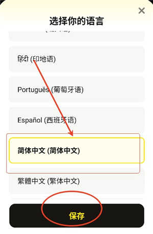 3、点击简体中文后点击最下方的保存即可。